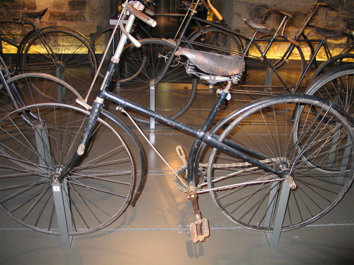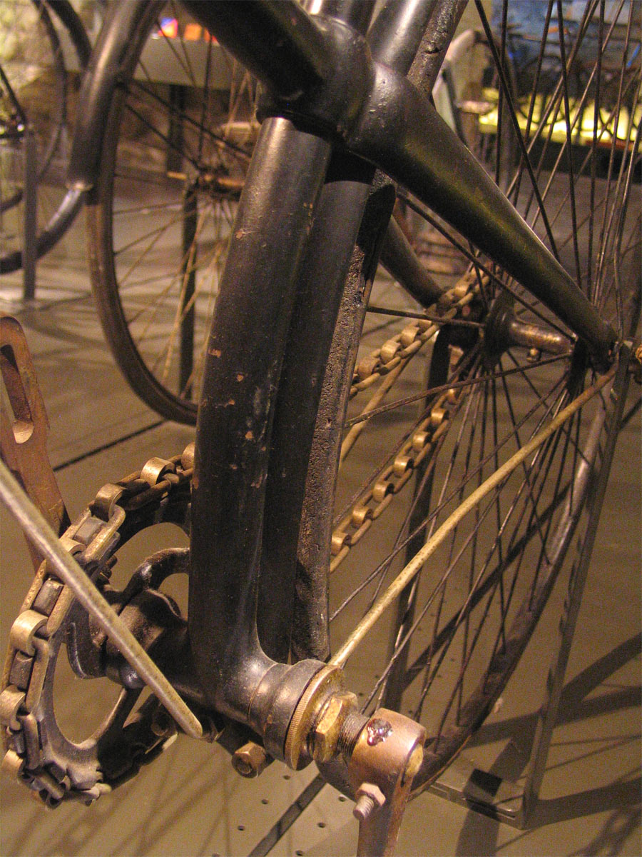 Although the museum list this bike as built in 1886, they must make a mistake - look at the ball head. 1891 would be a much better estimate. But it sure is a nice safety, look at the beautiful chain! (which looks like a 'Morgan's patent chain')